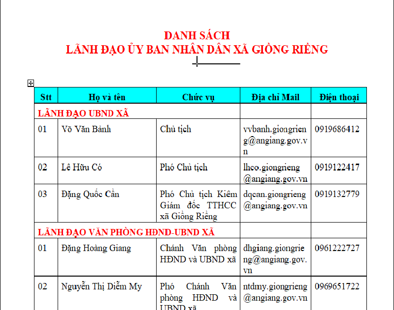Danh sách lãnh đạo UBND xã Giồng Riềng