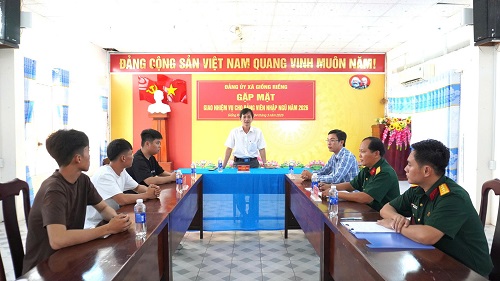Buổi gặp mặt là hoạt động ý nghĩa nhằm động viên tinh thần, đồng thời thể hiện sự quan tâm của Đảng ủy, chính quyền địa phương đối với các đảng viên trẻ trước khi lên đường nhập ngũ, góp phần thực hiện thắng lợi công tác tuyển quân năm 2026 của xã Giồng Riềng./.