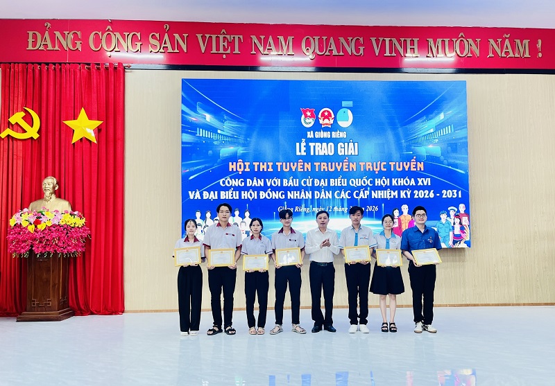 Nhằm đổi mới hình thức tuyên truyền, phát huy hiệu quả ứng dụng công nghệ thông tin và chuyển đổi số. Tạo sân chơi lành mạnh, bổ ích và thiết thực cho đoàn viên, hội viên, thanh niên và nhân dân qua đó nâng cao nhận thức, trách nhiệm của công dân đối với cuộc bầu cử đại biểu Quốc hội khóa XVI và đại biểu HĐND các cấp nhiệm kỳ 2026 – 2031, trong đó đối tượng trọng tâm là đoàn viên, hội viên và thanh niên. Xã đoàn đã phối hợp với HĐND và UBND xã tổ chức Hội thi tuyên truyền trực tuyến “Công dân với bầu cử đại biểu Quốc Hội và đại biểu Hội đồng nhân dân các cấp nhiệm kỳ 2026 - 2031” trên địa bàn xã Giồng Riềng. Cuộc thi diễn ra từ ngày 28/02/2026 đến ngày 09/3/2026 với tổng cộng 10 kỳ thi. Kết quả, Ban tổ chức trao 10 giải nhất, 10 giải nhì, 10 giải ba đối với cá nhân và 10 giải dành cho tập thể có số lượng thí sinh tham gia Hội thi nhiều nhất.